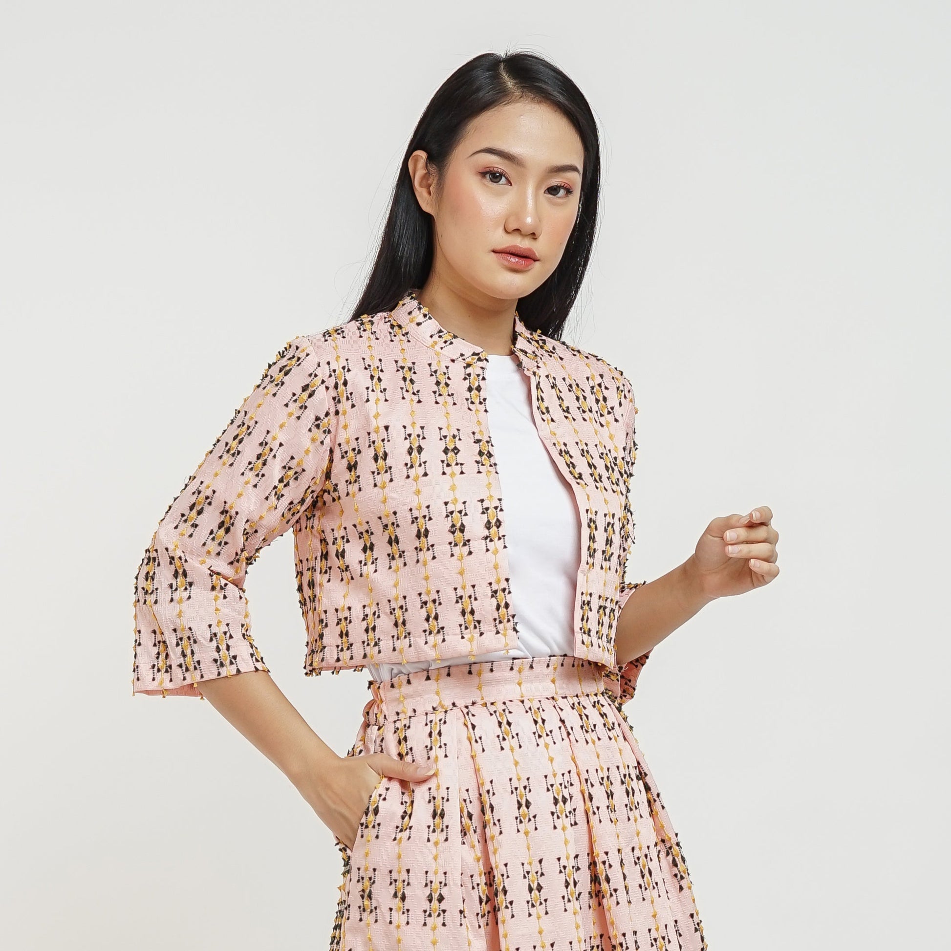 Alice outerwear made of heritage fabric, handwoven in Java. Designed with a cropped finish for that chic, minimalist silhouette.