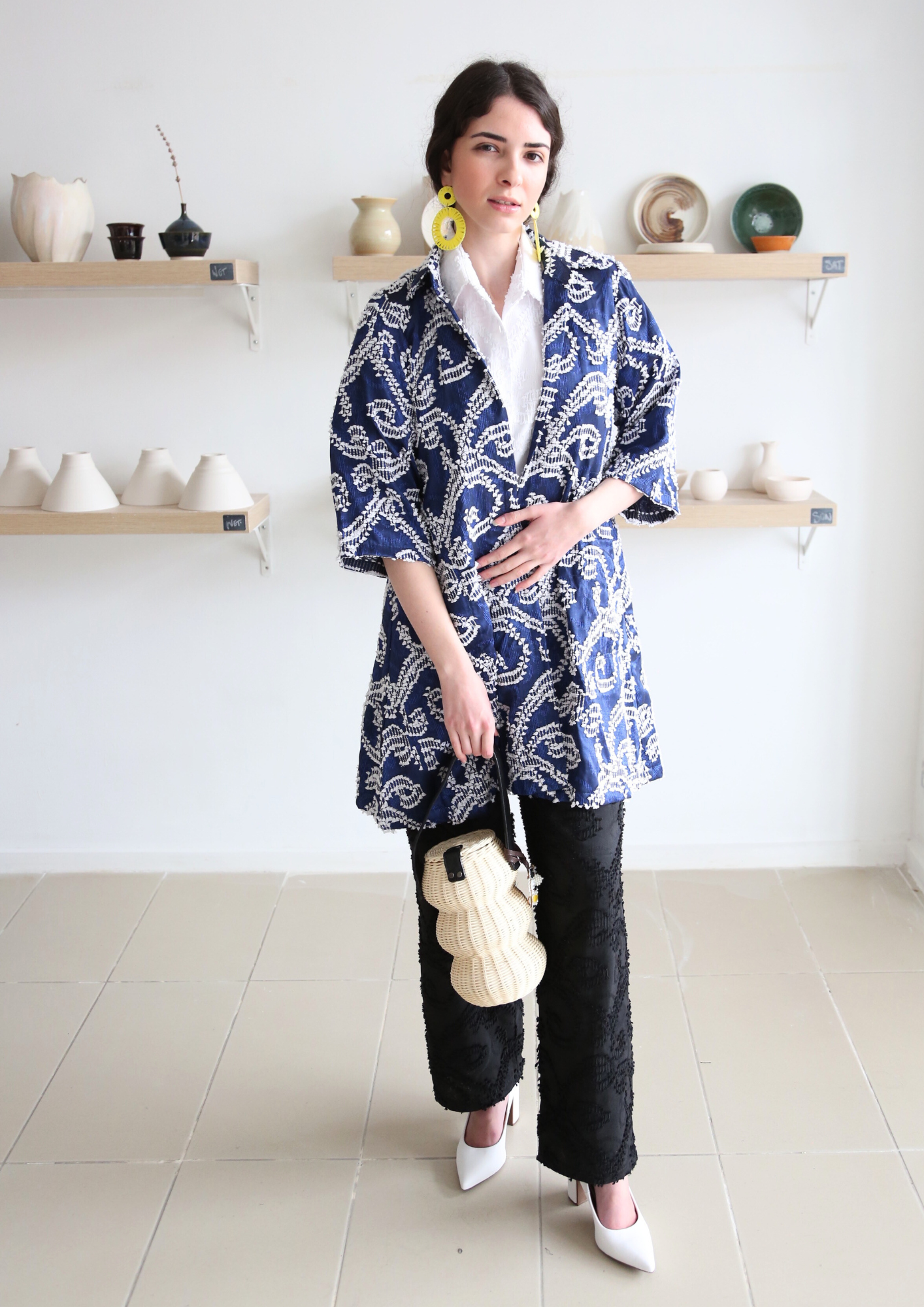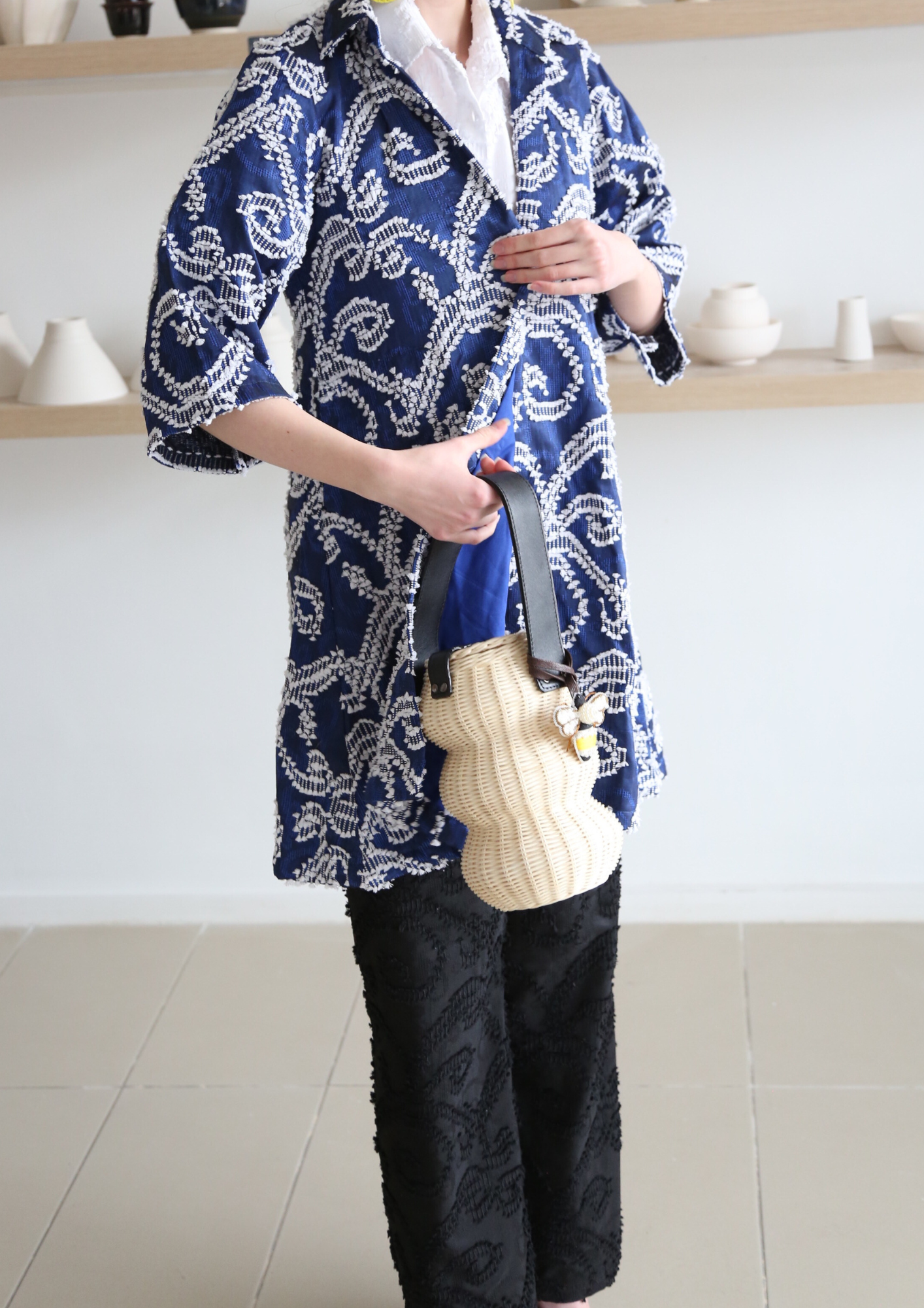 Alice long outerwear made with Indonesian handwoven heritage fabric. Designed with chic, minimalist silhouette for easy modern day wear. Comes with two pockets and collared neck.