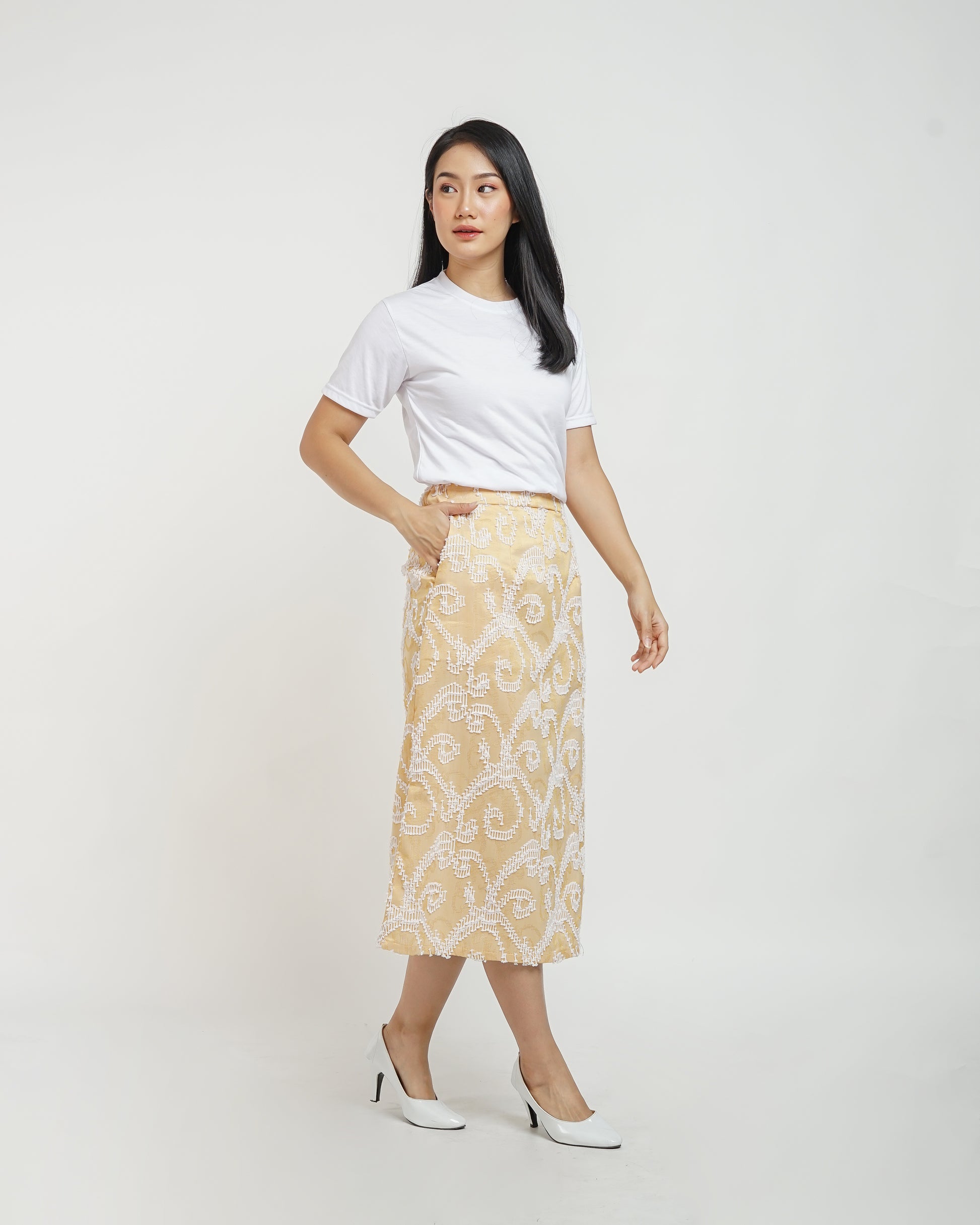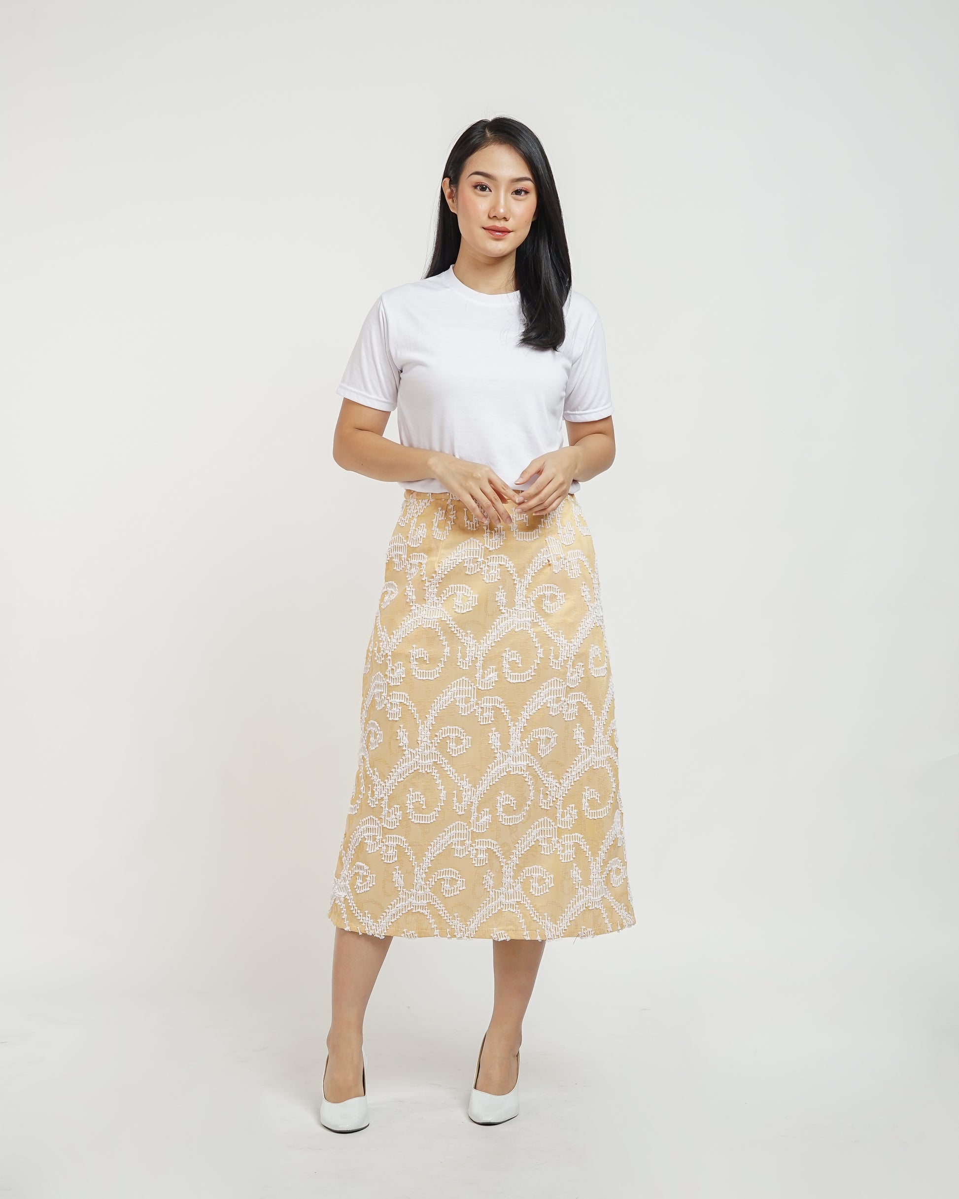 Cindy skirt made with heritage fabric handwoven in Java. Comfortable but chic, perfect for office days or weekend brunches! Stretchy at waist to for comfort and comes with two pockets.