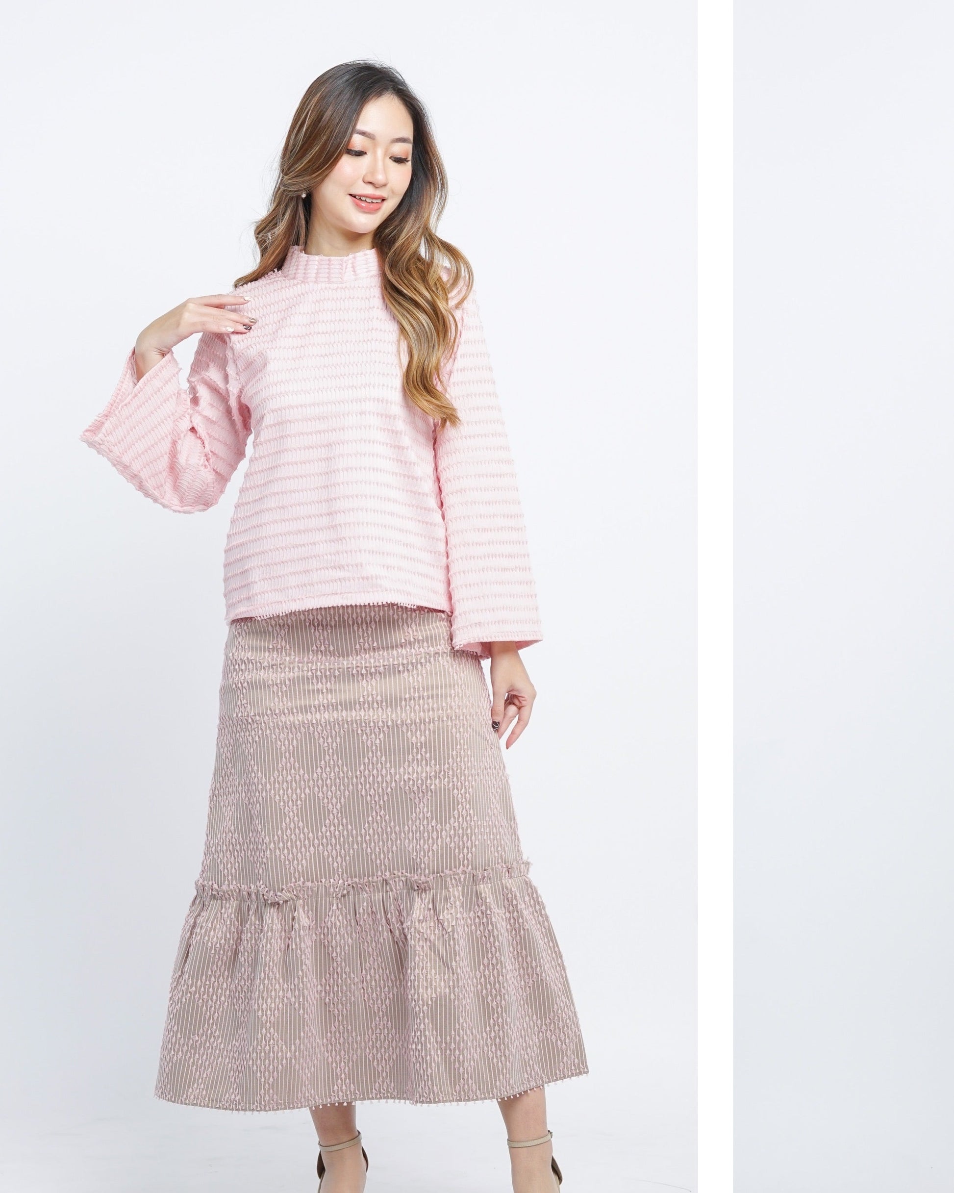 Raya long sleeves top with high neck, made with handwoven tenun ATBM and feathery accent.