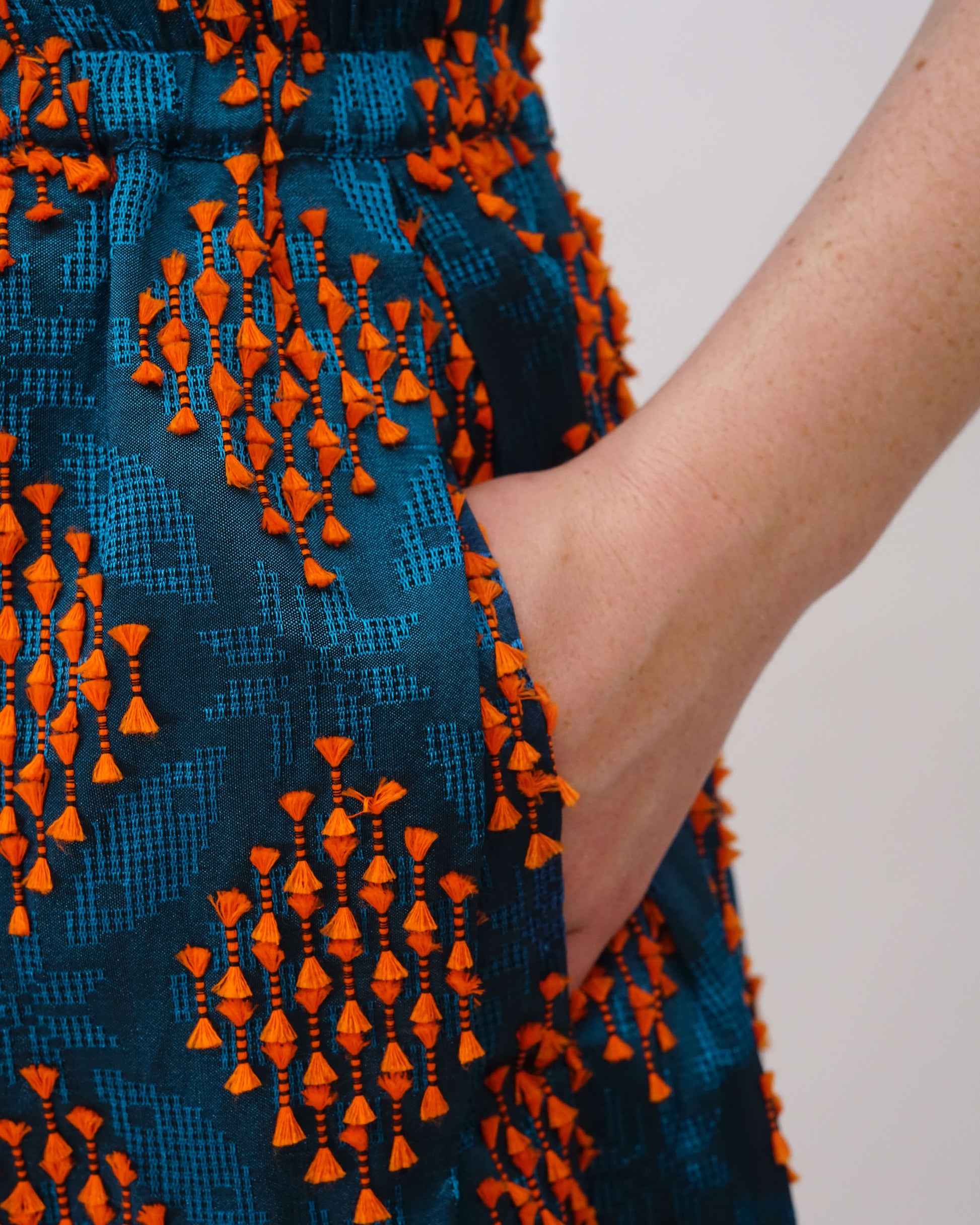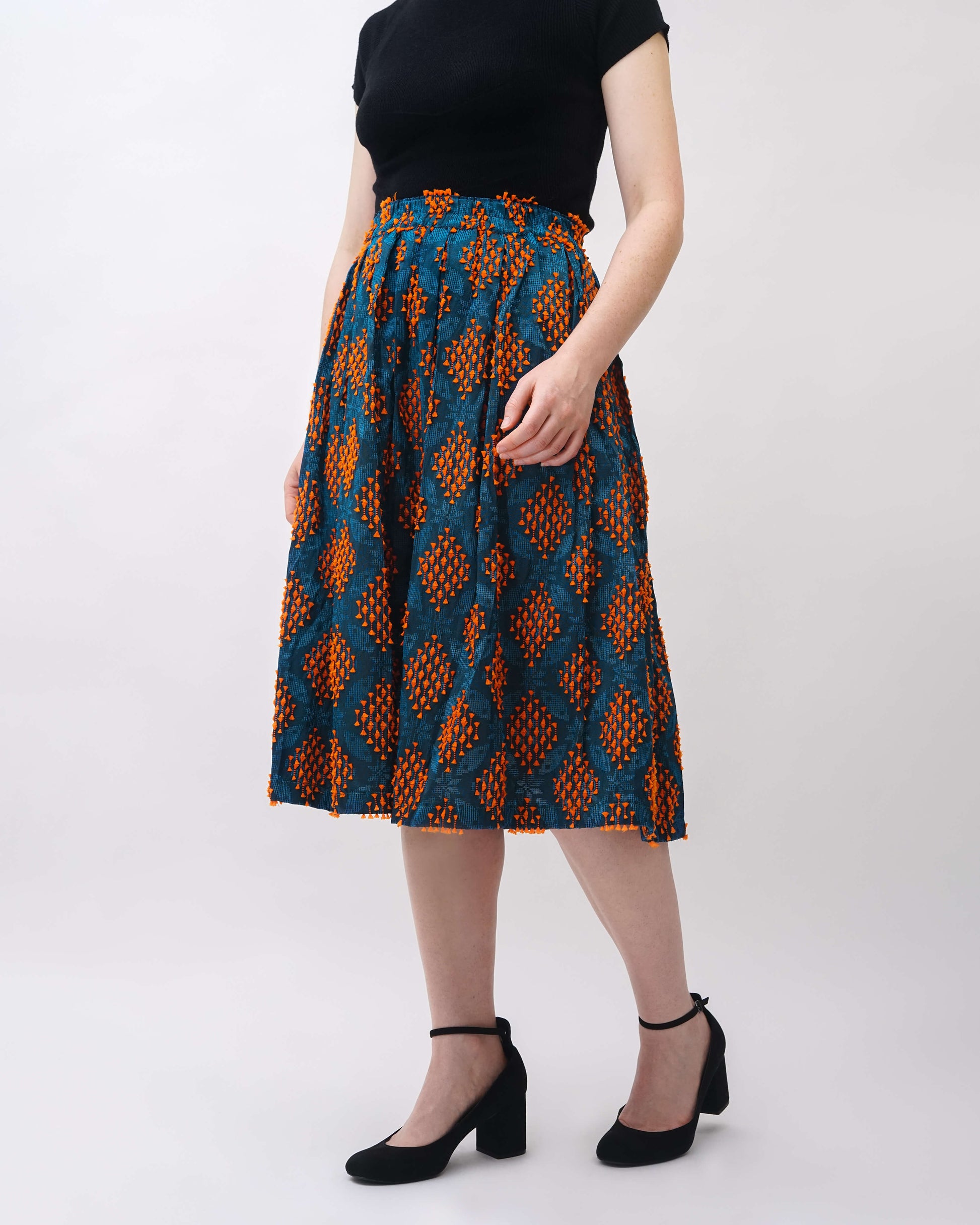 Vivienne skirt made of handwoven tenun ATBM with A-line silhouette for easy modern day wear. Stretchy at waist to for comfort and comes with two pockets.