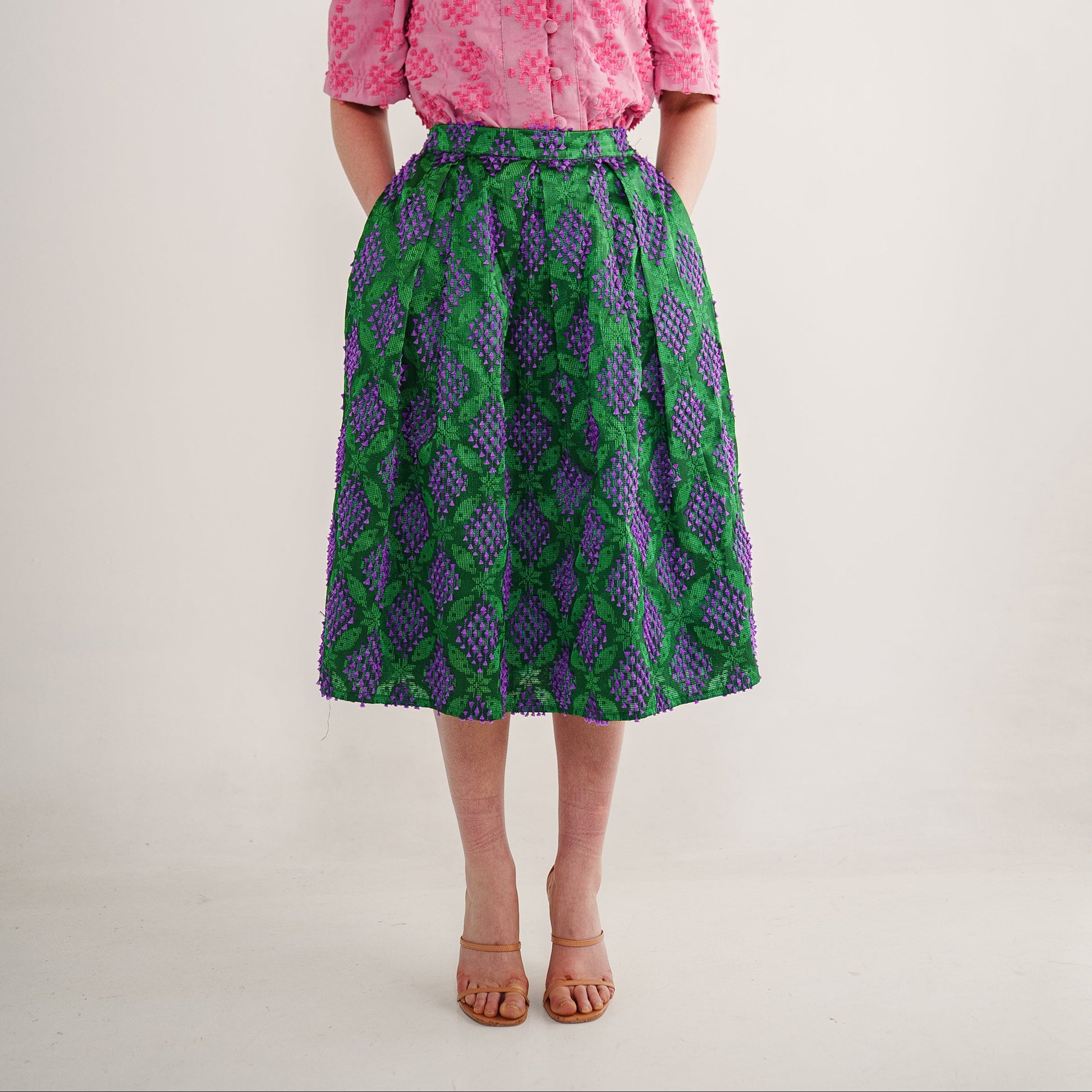 Vivienne skirt made of handwoven tenun ATBM with A-line silhouette for easy modern day wear. Stretchy at waist to for comfort and comes with two pockets.