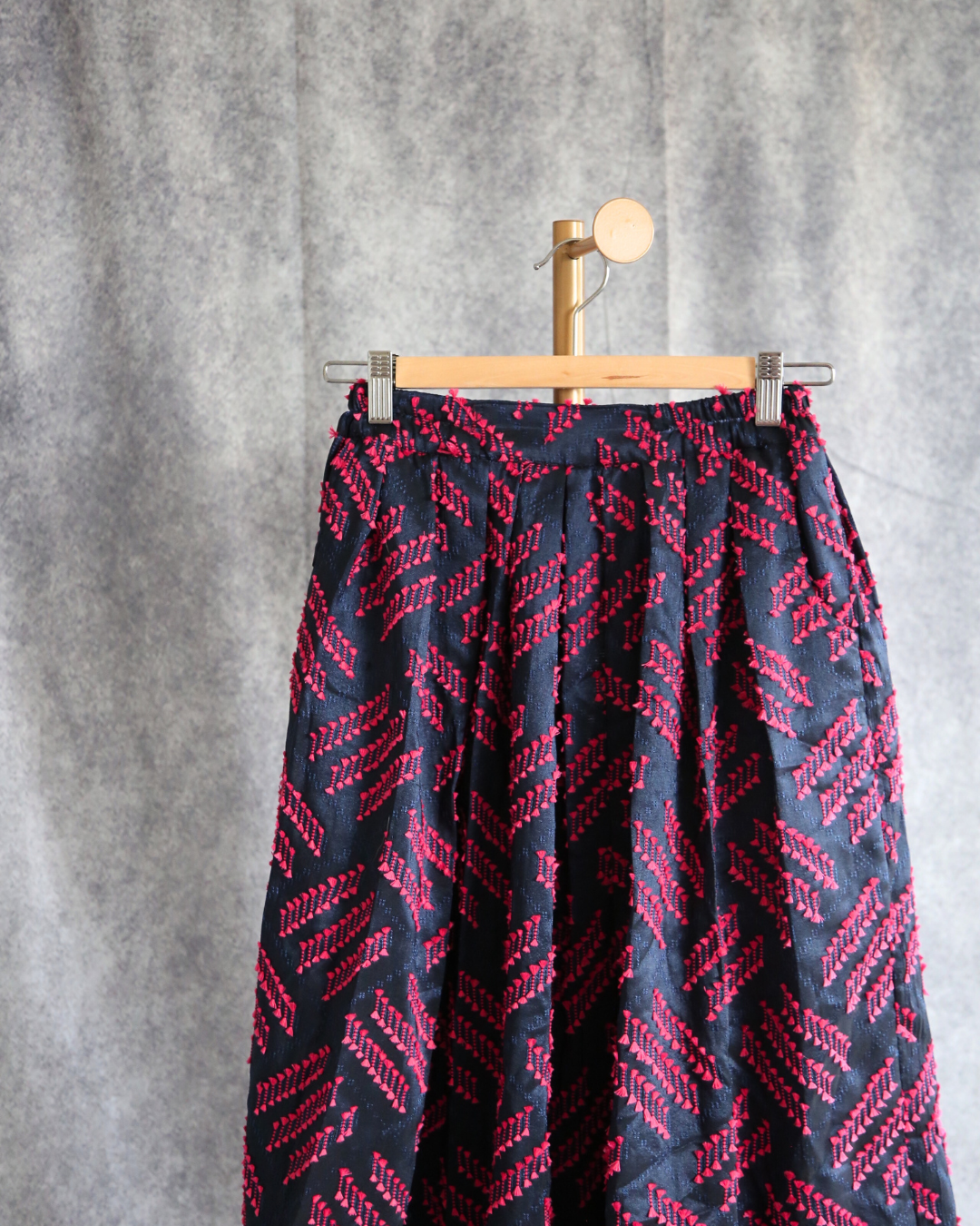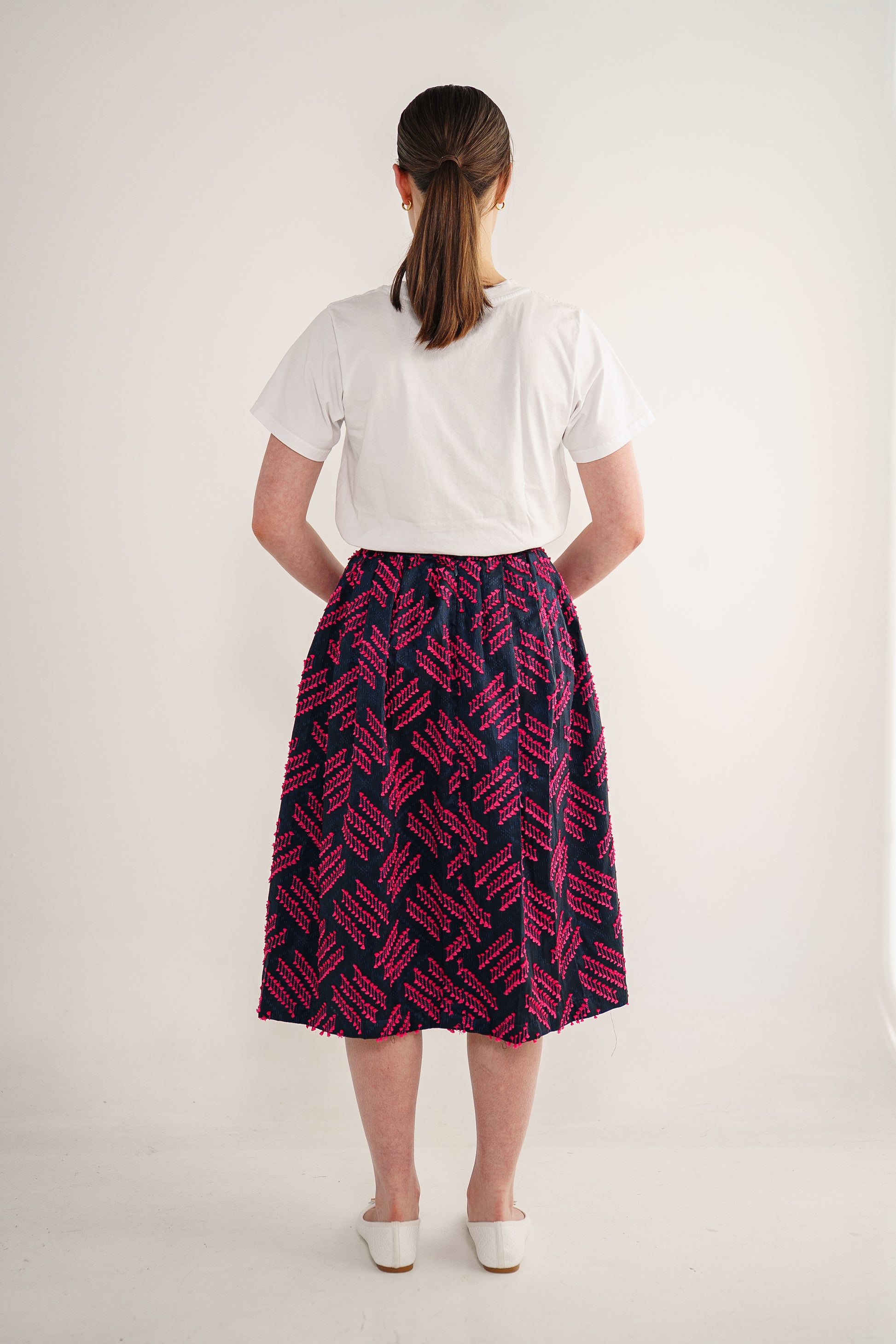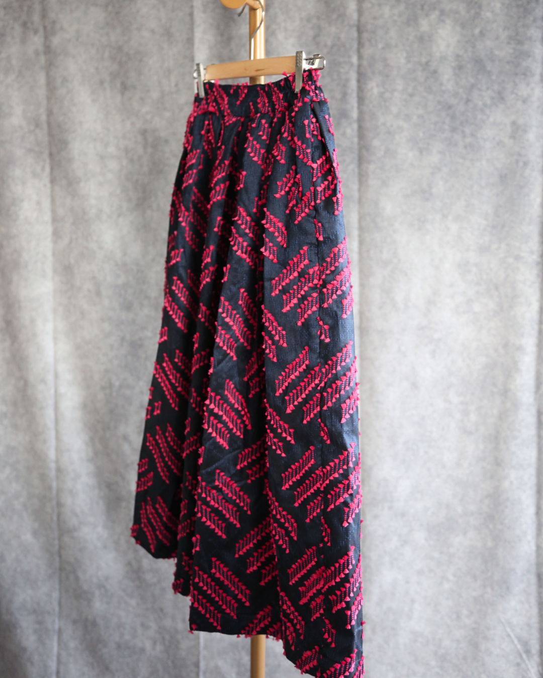 Made of handwoven tenun ATBM with A-line silhouette for easy modern day wear. Stretchy at waist to for comfort and comes with two pockets.